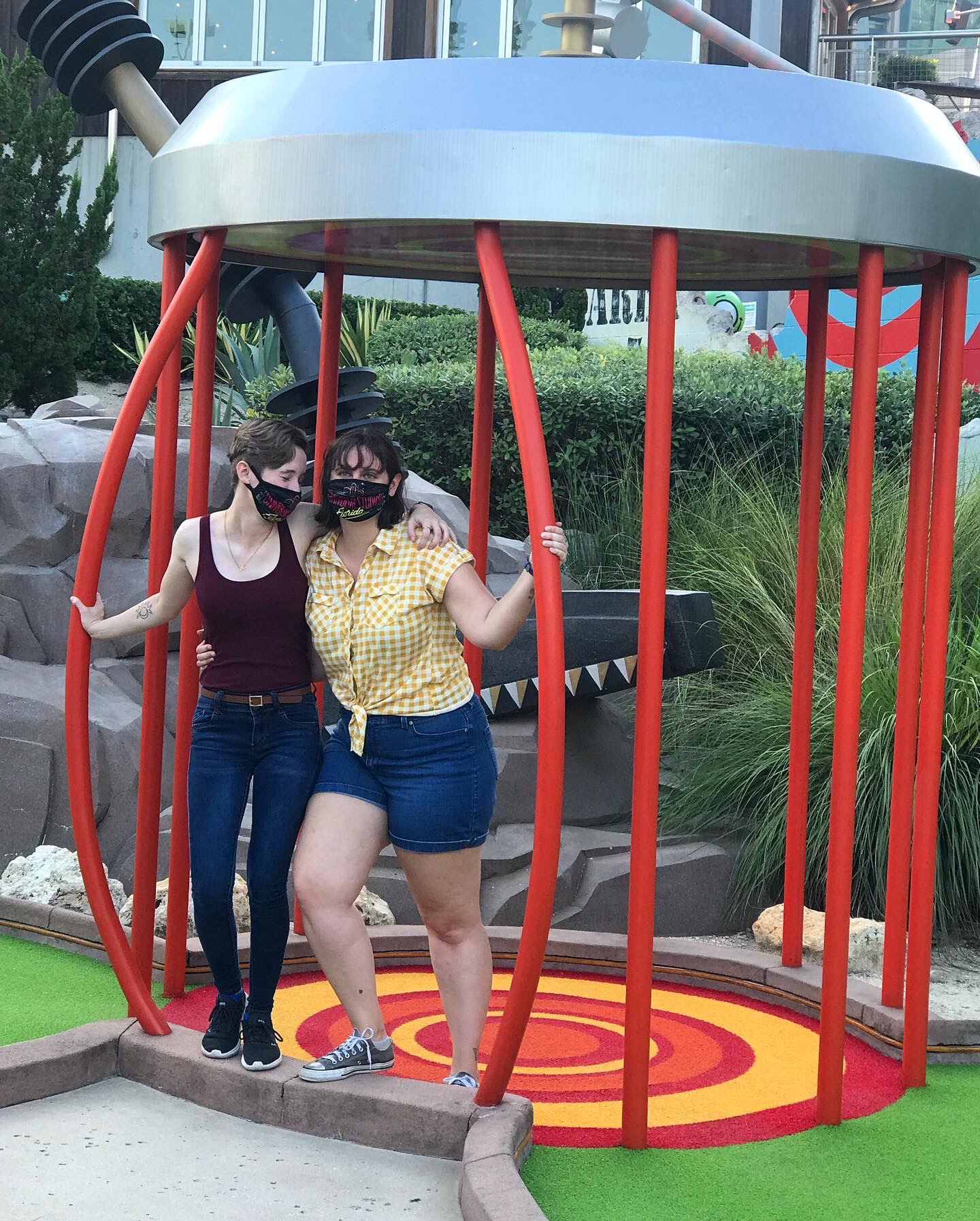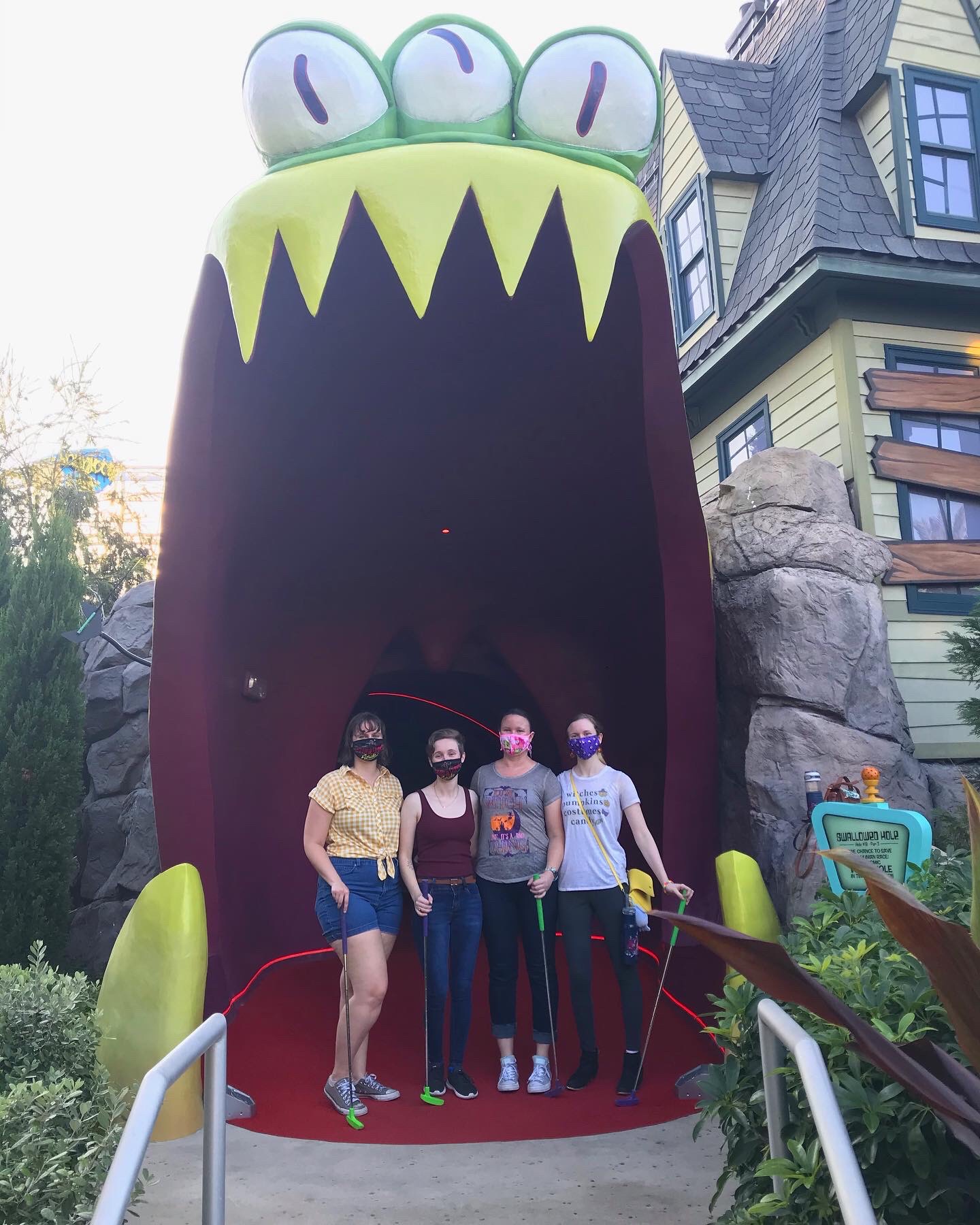 In the spirit of spookiness, Ray and I went with her family to play mini golf at Universal City Walk. Turns out, I’m still terrible at it. It was a very fun course themed with aliens. Almost no one was there, and we were also super spaced out from the few parties that were playing so it felt pretty safe. We also got a fun picture courteous of the group behind us.