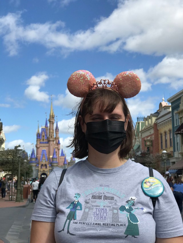 My final birthday celebration (because there can never be enough) was the following Sunday. Ray and I used the first of my Disney days to go to Magic Kingdom. It was my first time seeing the pink castle, which I love, and my first time visiting MK since the pandemic began. I know Disney during COVID is controversial for many, but I truly feel safer and more comfortable there than at the grocery store. With limited capacity, mandatory masking, adequate spacing, and real reinforcement, it’s pretty nice. We rode all our favorite rides, including Haunted Mansion and Space Mountain twice. It was a very necessary celebration.